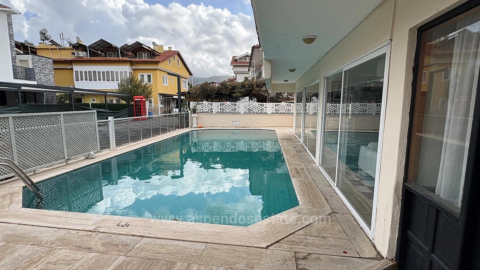 Der Pool hat eine Fläche von 50 m². Am Eingang befinden sich Rezeption und Wartebereich. Die großzügige Terrasse bietet einen herrlichen Blick auf die Kanäle und Felsengräber. Sie umfasst außerdem eine Küche und eine Bar und ist 400 m² groß. Die Terrasse eignet sich ideal als Restaurant. Einkaufsmöglichkeiten sind fußläufig erreichbar. Der Strand von Iztuzu ist 10 km und der Flughafen Dalaman 25 km entfernt. Preis des Boutique-Hotels: 85.000.000 TL (Das Hotel kann auf Anfrage komplett renoviert werden.)