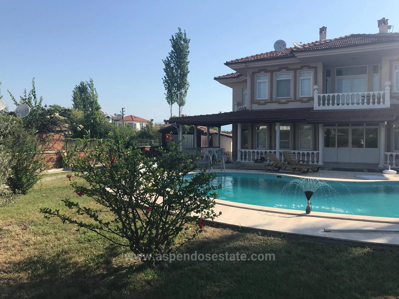 Eine Villa mit 4 Schlafzimmern, einem großen offenen Wohnbereich, einer separaten Küche und 3 Badezimmern mit insgesamt 250 m² Wohnfläche steht in Dalyan auf einem 1000 m² großen Grundstück zum Verkauf. Alle Zimmer sind klimatisiert. Beheizt wird die Villa mit einer Kombitherme. Ein Kamin und ein Außenpool gehören ebenfalls zur Ausstattung. Die Villa verfügt über einen großen Garten und liegt in fußläufiger Entfernung zu Einkaufsmöglichkeiten und dem Wochenmarkt. Der Strand von Iztuzu ist 10 km und der Flughafen 25 km entfernt. Das Stadtzentrum ist bequem zu Fuß erreichbar. Die Villa ist renovierungsbedürftig. Preis: 425.000 GBP.