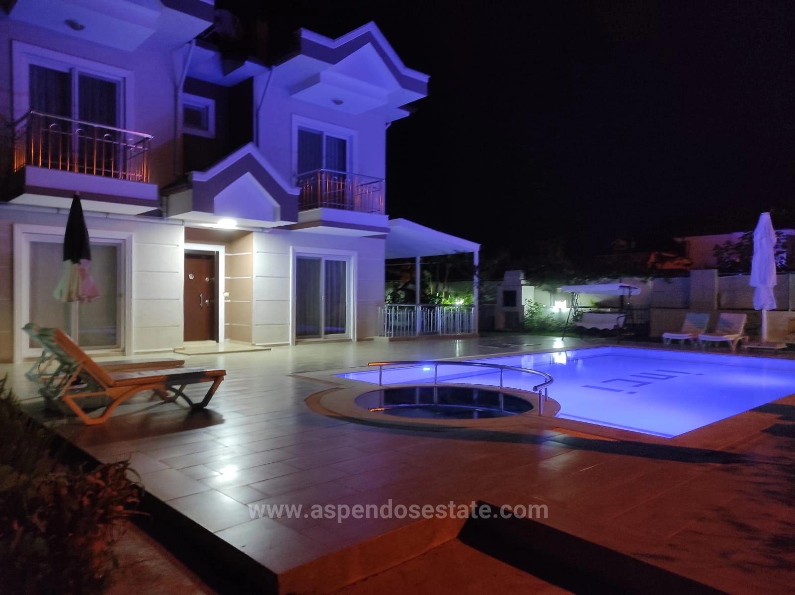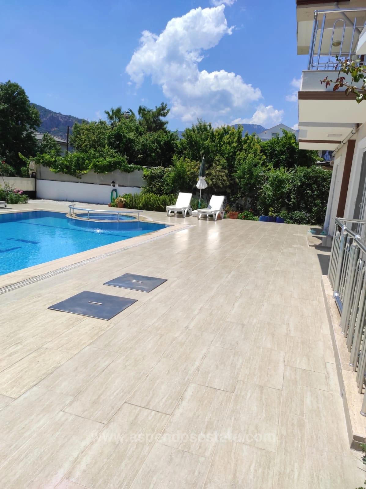 In Dalyan Gülpınar steht eine Villa auf einem 545 m² großen Grundstück zum Verkauf. Sie verfügt über vier Schlafzimmer, vier Badezimmer, ein Wohnzimmer mit offener Küche und einen privaten Außenpool im Erdgeschoss. Alle Zimmer sind klimatisiert. Die Villa ist komplett möbliert und liegt in fußläufiger Entfernung zu Einkaufsmöglichkeiten. Der Strand von Iztuzu ist 10 km und der Flughafen 28 km entfernt. Die Villa bietet einen herrlichen Blick auf Natur und Wald. Preis: 25.000.000 TL