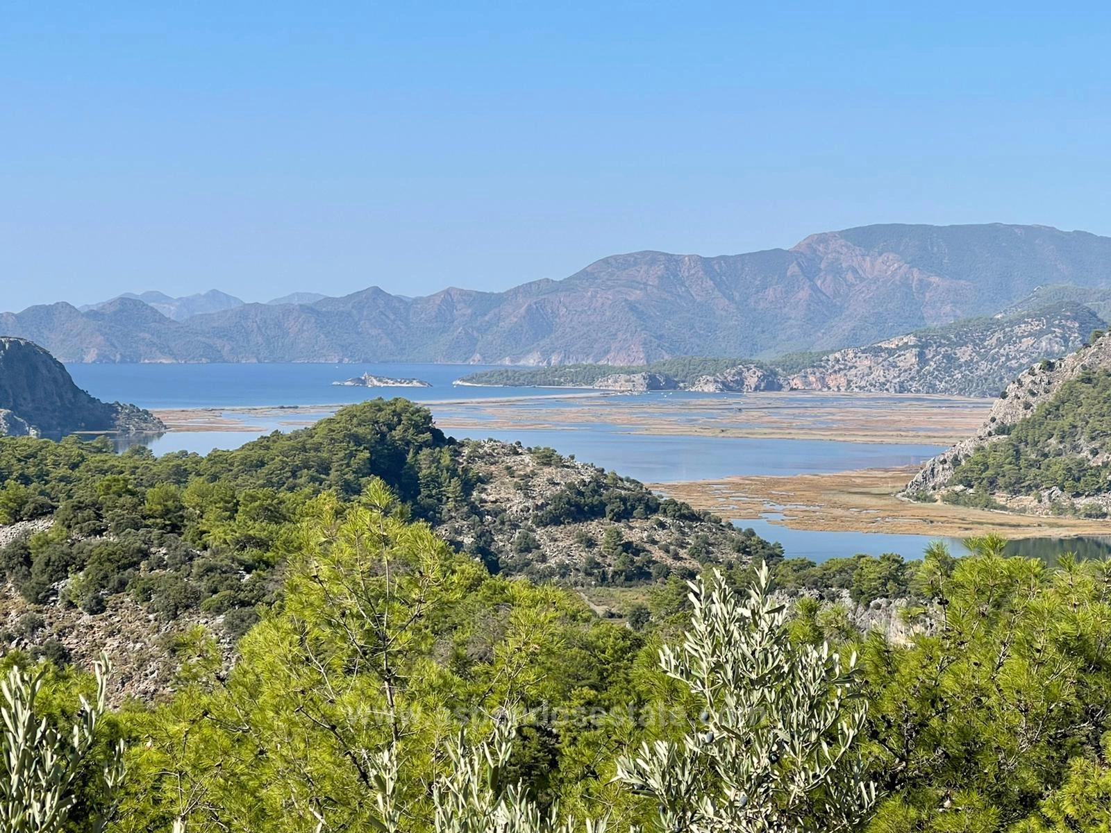 3 parcels with full sea view are for sale in Gökbel, all three side by side. Each of the parcels is 500+1014+2000m2, total area is 3514m2. There are no road, water, electricity or telephone problems. There are local and foreign investors around the land. I recommend it for future investment. There are regional zoning plan studies. There is no construction at the moment. Gökbel neighborhood is a very preferred area. When the plans are completed, the value of these places will increase 3-5 times. There are olive and various fruit trees in the land surrounded by pine forests. 5 minutes from shopping markets. 5 km from Iztuzu beach, 10 km from Dalyan, 16 km from the airport, 12 km from Sarıgerme beach, 10 km from Kargicak bay. The price of the entire land: 375,000 EURO