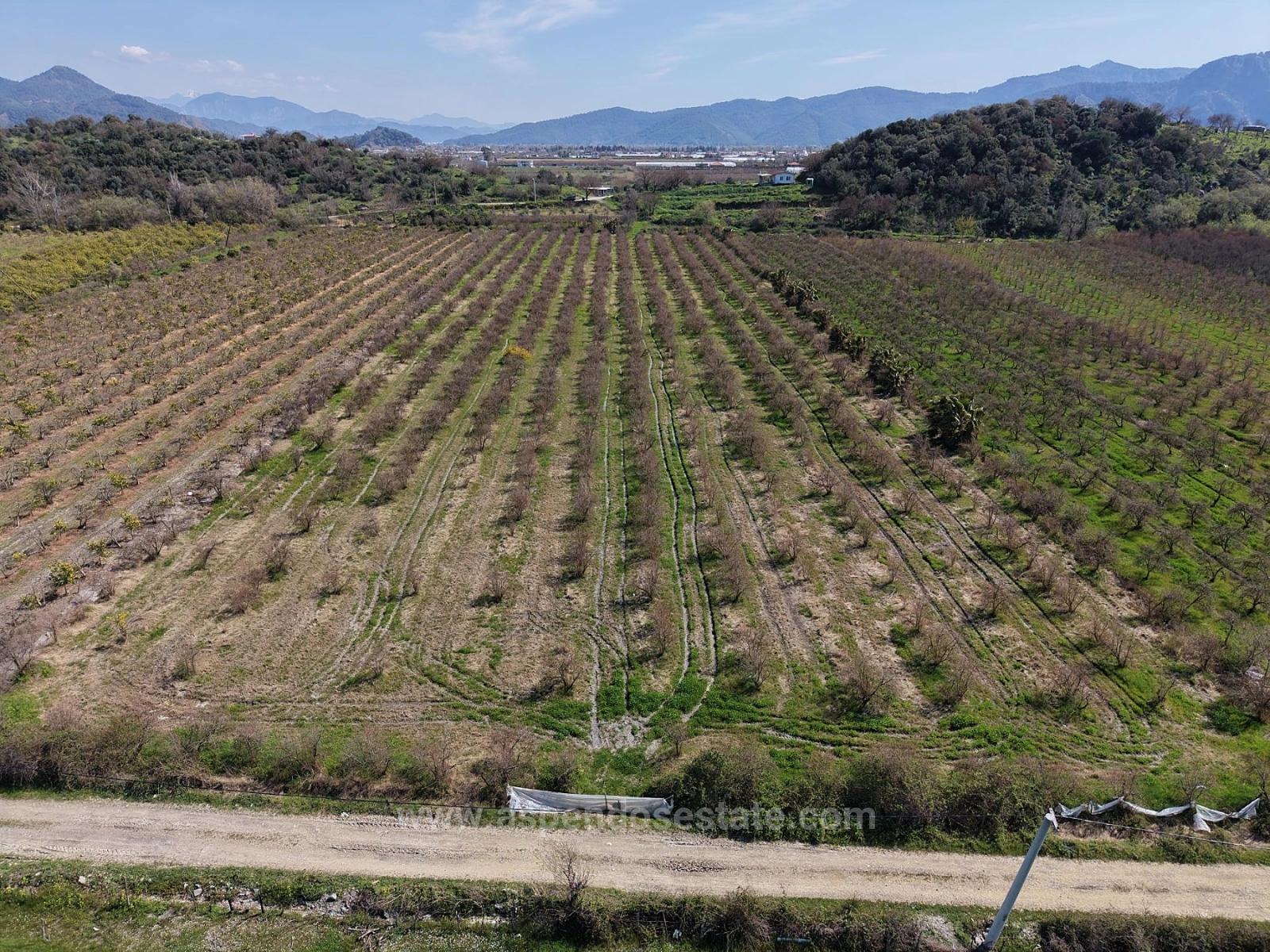 Продается гранатовый сад площадью 16 710 м2 возле озера в Эскикёй. Нет проблем с дорогами, водой, электричеством и телефоном. Годовой урожай фруктов составляет в среднем 45 тонн. Вокруг идет строительство. Из гранатового сада, расположенного в 3 км от Дальяна, в 13 км от пляжа Изтузу и в 30 км от аэропорта, открывается вид на горы и озеро. Цена: 35 000 000 TL