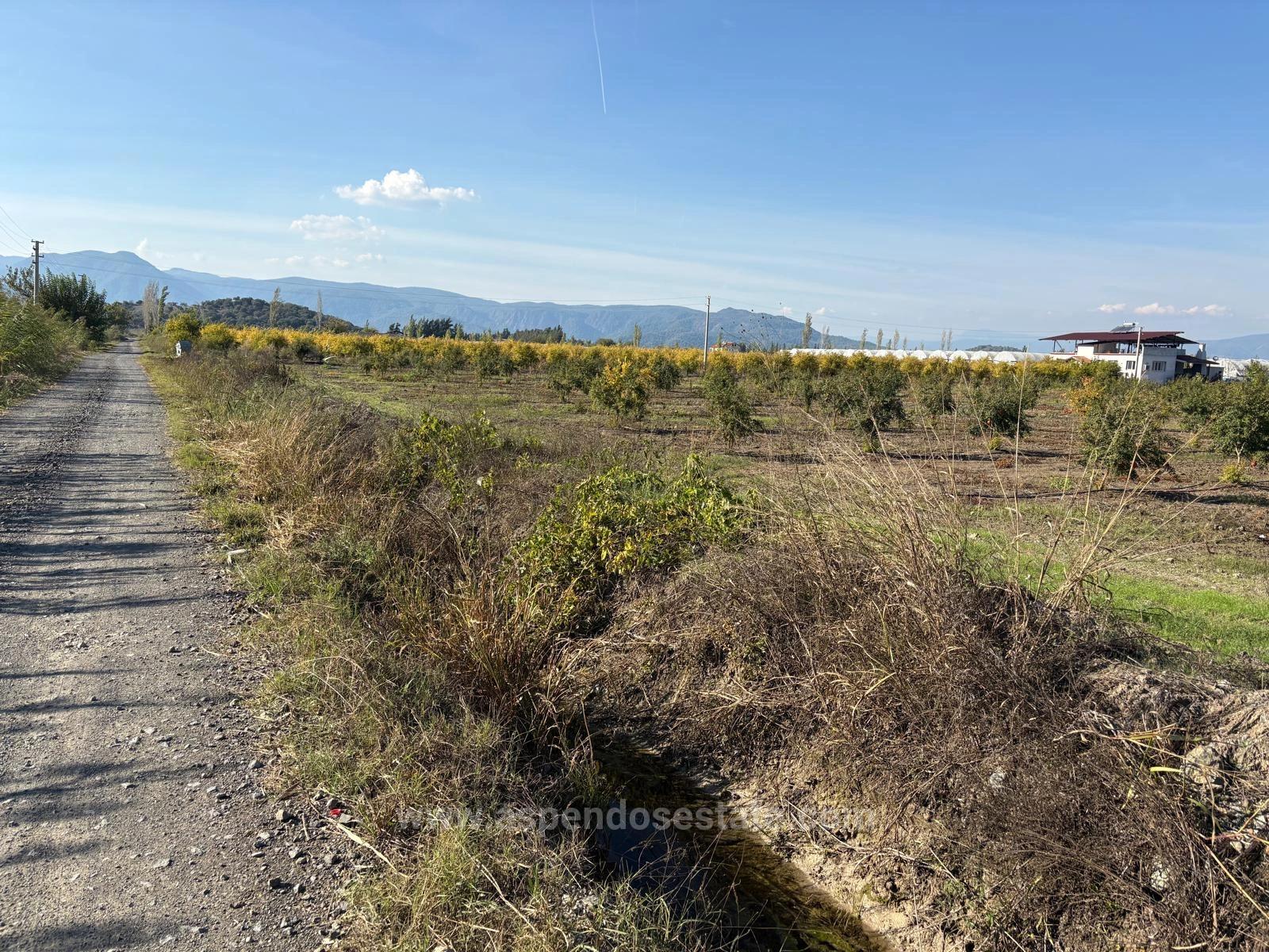 В Эскикёе продаётся участок общей площадью 21 500 м2, состоящий из двух смежных участков площадью 11 262 + 10 238 м2. На участке растут двухлетние гранатовые деревья. Нет проблем с дорогой, водой, электричеством и телефонной связью. На участке есть электричество и глубокая артезианская скважина. Система орошения капельная. К участку проложена кадастровая дорога. Вокруг расположены населённые пункты. Стоимость участка, расположенного в 3 км от Даляна, в 10 км от Ортаджи, в 13 км от пляжа Изтузу и в 25 км от аэропорта: 37 500 000 турецких лир