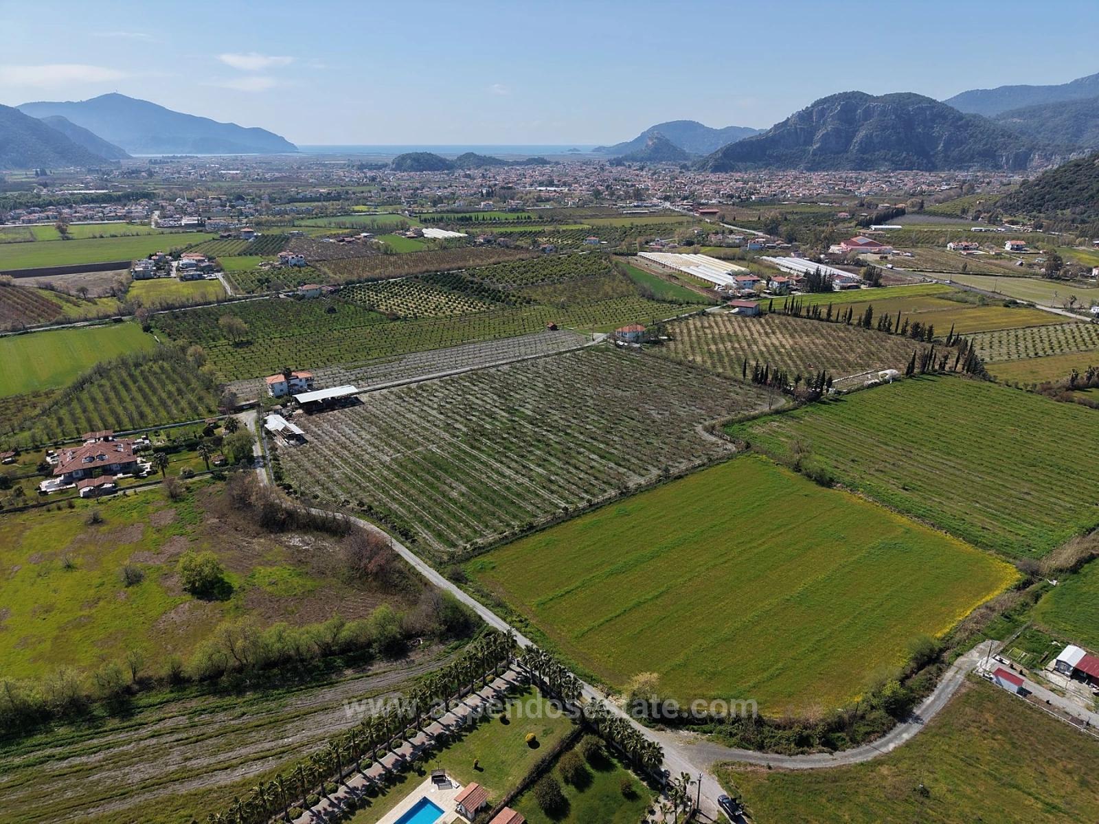 Dalyan merkeze yakın 17.550m2 narenciye bahçesi satılıktır. İçerisinde yaklaşık 200m2 yapı kayıt belgeli bina bulunmaktadır. Yol, su, elektrik, telefon sorunu yoktur. Yıllık meyve getirisi 60-70 tona yakındır. Etrafında yapılaşmalar mevcuttur. Bina tadilat ruhsatı ile düzenlenebilir. Dalyan merkeze 2 km, İztuzu Plajı'na 12 km, havaalanına 25 km mesafesi olan bahçenin fiyatı: 1.650.000 Dolar
