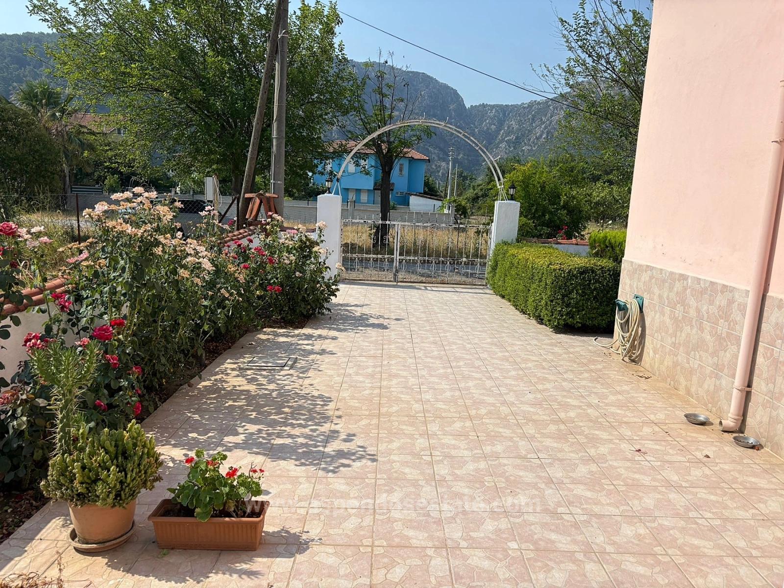 Okçular'da 514 m2 arsa içerisinde 2 katlı müstakil ev satılıktır. Ev bağımsız alt-üst 2 daireden oluşmaktadır. Giriş katı 3 yatak odalı, 1 salon, 1 mutfak, 1 banyolu ve teraslıdır. İkinci kat ise 3 yatak odalı, 1 salon, 1 mutfak, 1 banyo, 2 adet balkonu vardır. Bir balkonun şöminesi ve oturma grubu bulunmaktadır. Açık otopark, depo ve bahçe sulamak için sondaj vardır. Ayrıca bahçe içerisinde çeşitli meyve ağaçları bulunmaktadır. Dalyan merkeze 3km, alışveriş marketlerine yürüme mesafesinde, İztuzu Plajı'na 13km, havaalanına 26km mesafesi olan evlerin fiyatı: 19.000.000 TL